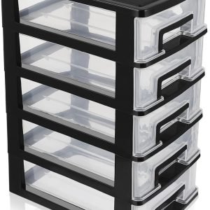 Kisangel Plastic Drawers 1pc Drawer Storage Cabinet Five Drawer Type Closet Layer Storage Cabinet Plastic Organizer Storage Rack for Office Home(Black and Transparent) Storage Drawers