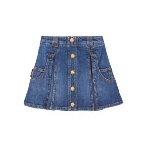 BALMAIN Women Leather Accent Denim Mini Skirt