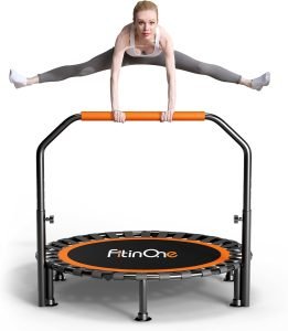 • Indoor & Outdoor Exercise Trampoline〒FitinOne fitness trampoline builds various muscle groups and strengthens shoulders. hips. and legs. Just 10 minutes of indoor fitness trampoline equals 1 hour of jogging. 30 minutes of cycling. or 20 minutes of swimming. making it great for weight loss.
