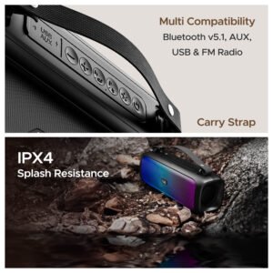 Elevate your party experience with the ultimate party companion ?? boAt Stone 580. It comes with a powerful 12W RMS Stereo sound that will pump up the energy of your favourite beats. You can seamlessly connect via Bluetooth v5.1. AUX. and USB. ensuring your music never stops. The built-in LED sets the perfect ambience. turning any space into a party place. Get ready to amplify your party beats and set the night on fire with Stone 580.