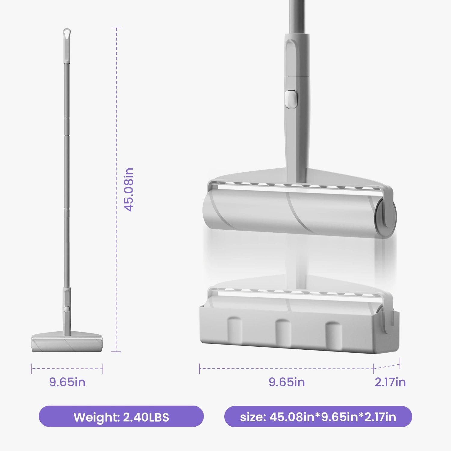 Meet Delomo Luna. your fluffy friend’s hair nemesis! This large lint roller has a 9.45” wide roller and 360 sticky sheets to clean pet hair 50% faster. Adjustable lengths up to 45” make it perfect for any cleaning task. Enjoy efficient. professional cleaning with Delomo Luna!